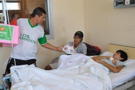 El programa Tekové Potí “Vida Pura”, que lleva adelante el Gobierno Provincial, mostró hoy su faceta solidaria y le arrancó su mejor sonrisa a los niños internados en el Hospital Pediátrico “Juan Pablo II”, cuando el equipo “Los Amigos, del barrio La Vizcacha, ganador del torneo 2011, fue portador de juguetes y un claro mensaje de camaradería y valores propios de la sana competencia deportiva.