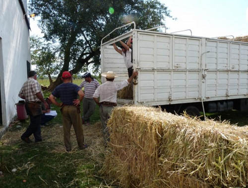 Desde las últimas lluvias también el personal del Plan Ganadero se encuentra asistiendo a un número importante de pequeños productores afectados, mediante la entrega de fardos de sorgo forrajero y alimento balanceado en los parajes de los departamentos de Concepción y Mercedes. En la primera zona se está trabajando en equipo con el personal de la Dirección de Parques y Reservas que colaboran con la logística de entrega en los Parajes de Yahaveré, Carambola y Ñu Pí, mientras que en Boquerón se aprovecha el salón de usos múltiples de esa localidad, lugar desde donde se distribuye el alimento.