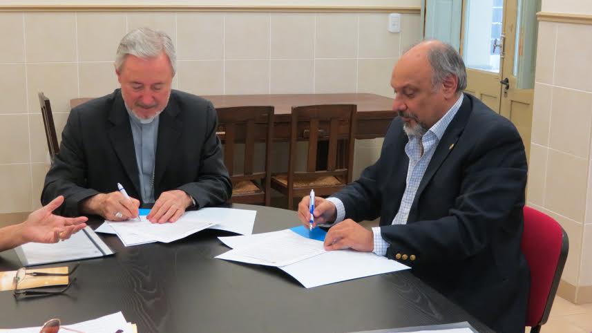 Política | El arzobispo Andrés Stanovnik en su carácter de presidente de “Cáritas”, y el presidente del Banco de Corrientes, Alejandro Abraham, acompañado de la directora Rosa Pasetto, suscribieron poco después del mediodía de este lunes, un convenio que ratifica que la institución filantrópica “Cáritas”, centraliza sus recaudaciones en todo el territorio provincial, en el organismo bancario.