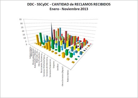 Política | La Subsecretaria de Comercio y Defensa del Consumidor (organismo que conduce el doctor Juan José López Desimoni), dependiente del Ministerio de Producción, Trabajo y Turismo, informa que durante el mes de noviembre de 2013, se recibieron 42 reclamos, por lo que se mantuvo elevada la de cantidad de reclamos y denuncias presentadas mensualmente por consumidores y usuarios ante dicho organismo.