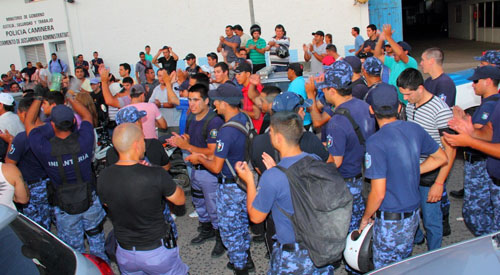 Política | Luego de 24hs de reclamos, efectivos policiales lelgaron a un acuerdo con el Gobierno provincial.No habría sanción para los policías. Llevarían el acta para que firme el Gobernador Bacileff Ivanoff.