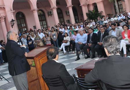 Política | El Gobernador de la Provincia presidió esta tarde el acto en el que trabajadores del Ministerio de Salud Pública pasaron a integrar la planta del Estado provincial. Ricardo Colombi anunció que luego del pase a planta permanente seguirá el proceso con los agentes del programa Formarse y Crecer, y que se está trabajando actualmente en el armado de la lista para los contratos.